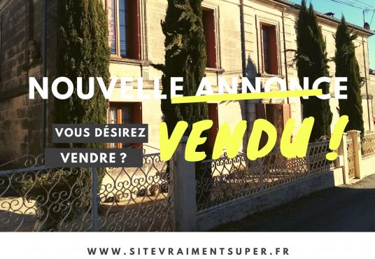 A VENDRE 290 000 € FAI SAMONAC 33710 5 min. de BOURG SUR GIRONDE Maison R+1 de 180 m2 avec : * 5 chambres, * 2 cuisines, * 1 bureau, * 1 séjour de 35 m2 avec cheminée-insert, * 1 salle à manger, * 1 salle de jeu en pierres apparentes à aménager de 37 […]